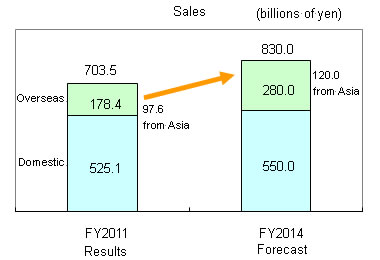 Fuji Electric, as a part of a three-year rolling plan starting this fiscal year, is expanding its infrastructure-related business focused mainly on power electronics application products in Asia, and China in particular, where there is significant economic growth, and is targeting 830 billion yen in sales in fiscal 2014, with 120 billion yen of that coming from Asia.
