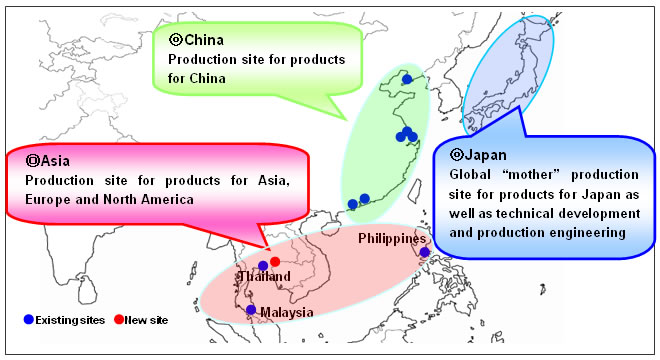In Thailand, Fuji Electric is utilizing its existing resources, namely that of its manufacturing subsidiary, Fuji Electric Power Supply (Thailand) Co., Ltd., to build a new factory that will serve as its central production site in Asia. This new leg of production will equip Fuji Electric with global production capability in the three key regions of Japan, China and Asia overall, thereby strengthening Fuji Electric's cost competitiveness and avoidance of risks such as disasters and exchange rates by bolstering local design, local production and local consumption.